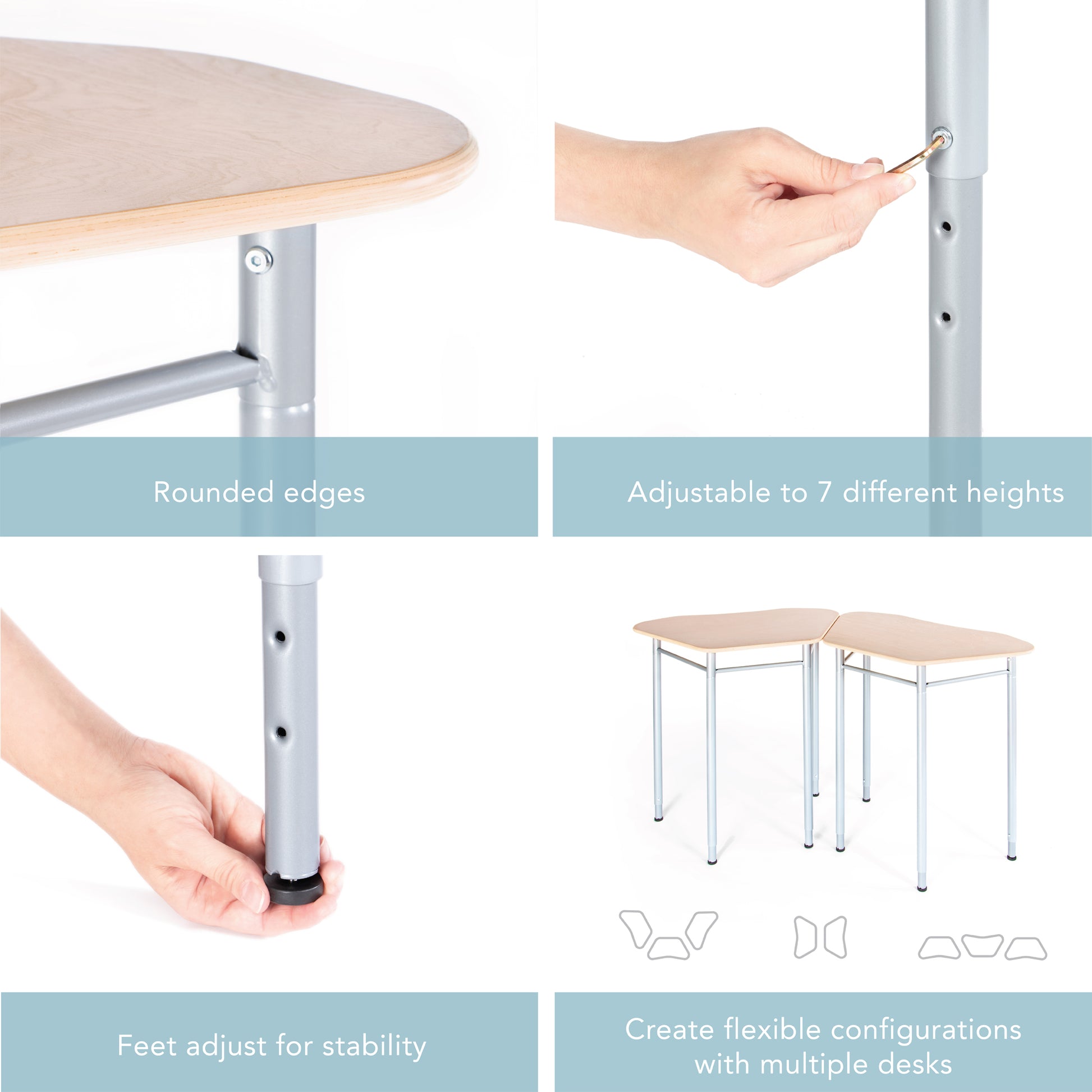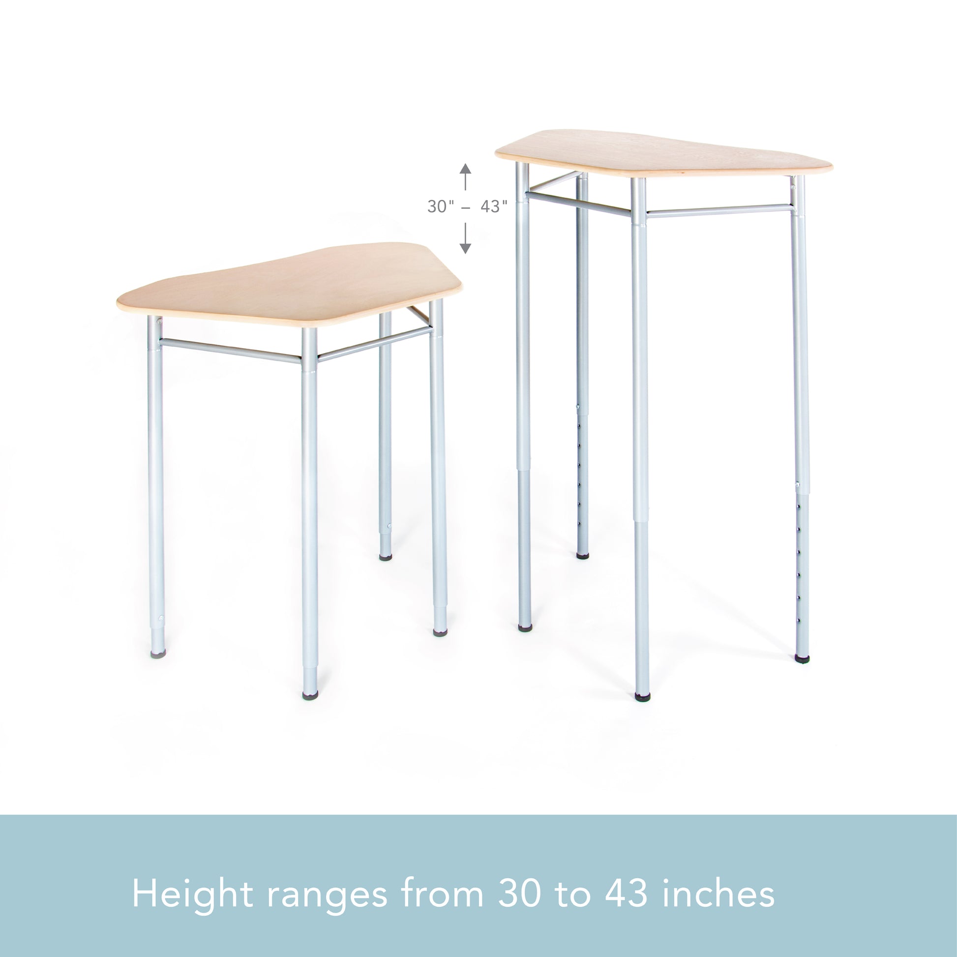 Modular Standing Desk features adjustable height that varies from 30-43 inches high. Desk offers a perfect learning environment required for student collaboration and classroom flexibility. Natural laminate top with four chrome legs.